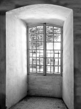 Pour les remparts plus récents, il nous faudra retourner à l’église pour en trouver une coupe faite lors de l’ouverture de la rue de l’église (vers 1820-1830). On a également une bonne vision de leur importance en observant cette fenêtre de La Chevalerie, ouverte dans leur épaisseur (on a eu le droit d’ouvrir des fenêtres dans les remparts seulement après la Révolution.)