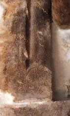 et dans la laverie, trois maisons plus haut, peuvent figurer la ligne de la façade du Prieuré bâtie en retrait des remparts, à l’intérieur du village.