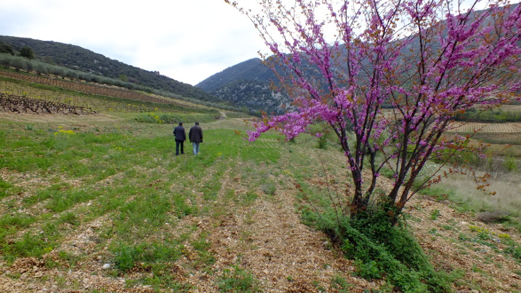 Le parking rive droite, sera établi non loin de la nécropole et Jean-François Colonat qui anime de nombreuses associations culturelles autour de Mollans et qui a notamment classé et sauvé de nombreuses archives de cette ville a averti les autorités du monde de l’archéologie. Plusieurs visites ont eu lieu et, le 20 avril 2015, un groupe d’amis conduit par Jean-François Colonat et Dominique Carru s’est rendu sur les lieux. On notait aussi la présence de Jo Degout, Jacques Galas, Yves Girard et Marc Legros, toutes personnes fortement impliquées dans la vie culturelle et passionnées par l’histoire de la région.