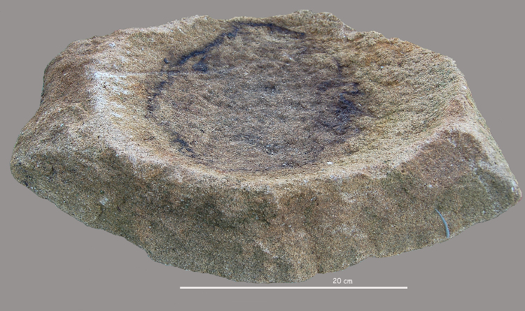 Hameau de Veaux. Lieu-dit : “En Terrone”. Dormant de meule. Coll. privée.