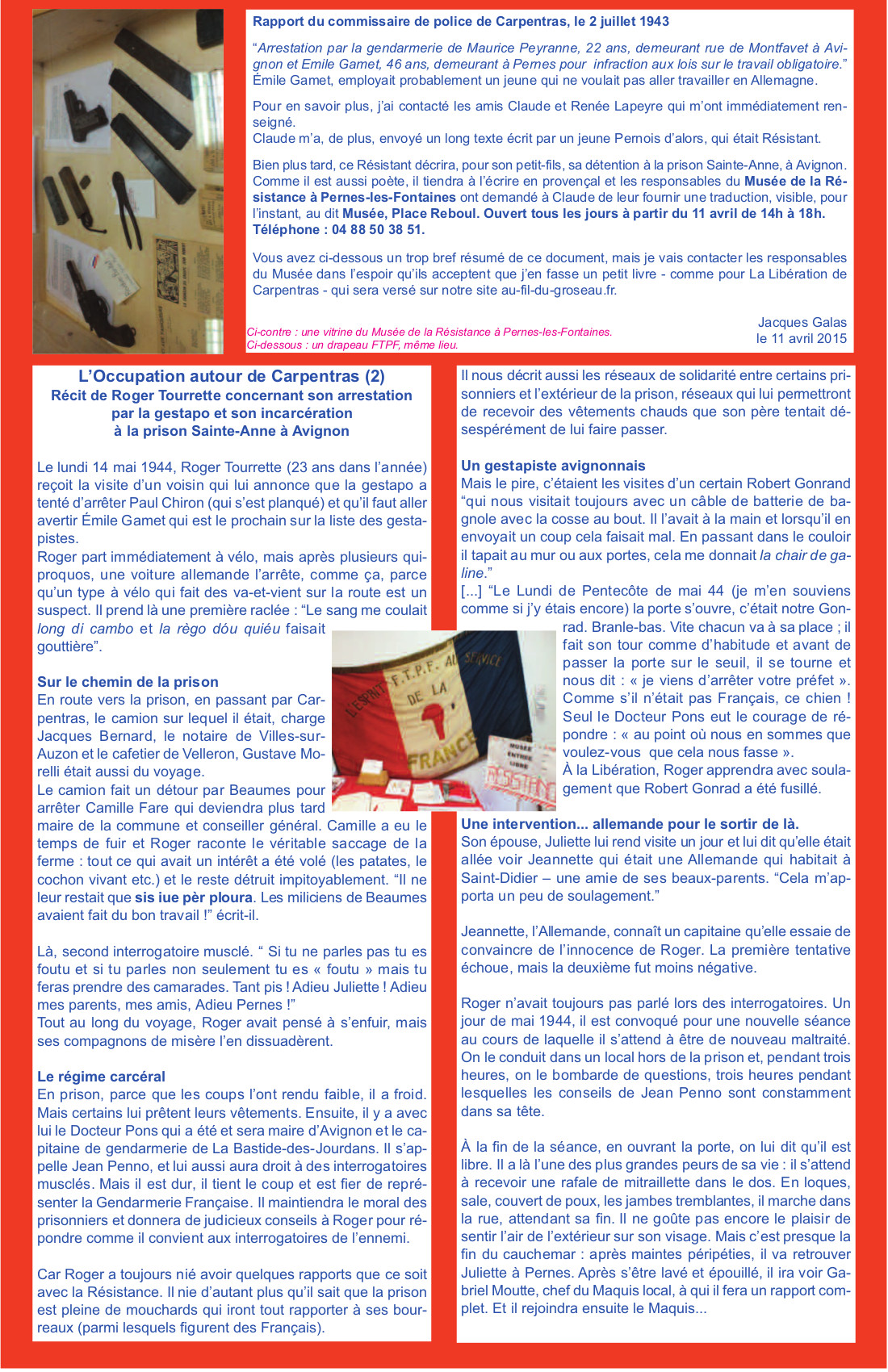 Claude m’a, de plus, envoyé un long texte écrit par un jeune Pernois d’alors, qui était Résistant.