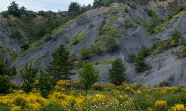 Puis la continuation de la surrection des Alpes, cette fois, soulève vers le haut notre Région dont les fleuves et les rivières creusent profondément leur lit. La mer, une dernière fois, envahit le couloir Rhodanien et ses abords pour déposer des Marnes bleues issues de larges vasières. (photo n° 5)