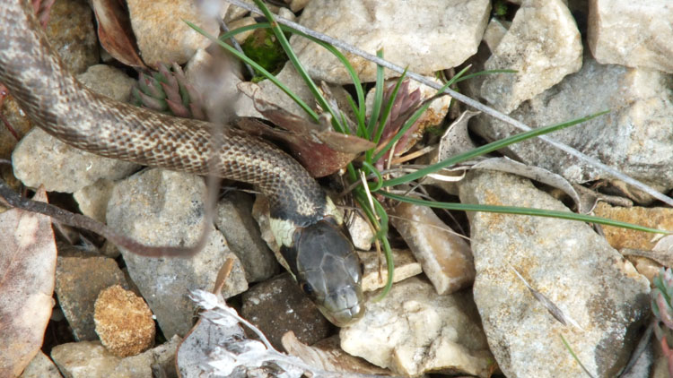 Couleuvre à collier jaune Jeune spécimen rencontrée dans les combes de Veaux (Rocher de l'Angelin) en octobre 2014... + d'infos |
