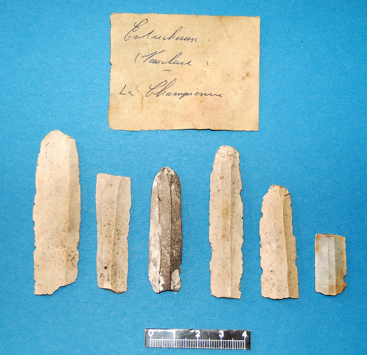 Les maillets Pour percuter et éclater la gangue de calcaire qui entoure le silex, il fallait un outil construit à partir d’un matériau beaucoup plus dur que le calcaire. Les galets de quartzite importés de la Vallée de la Durance ou des terrasses de Châteauneuf-du-Pape firent l’affaire. C’est un... + d'infos