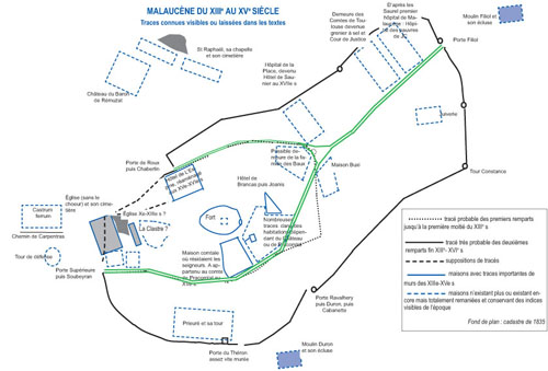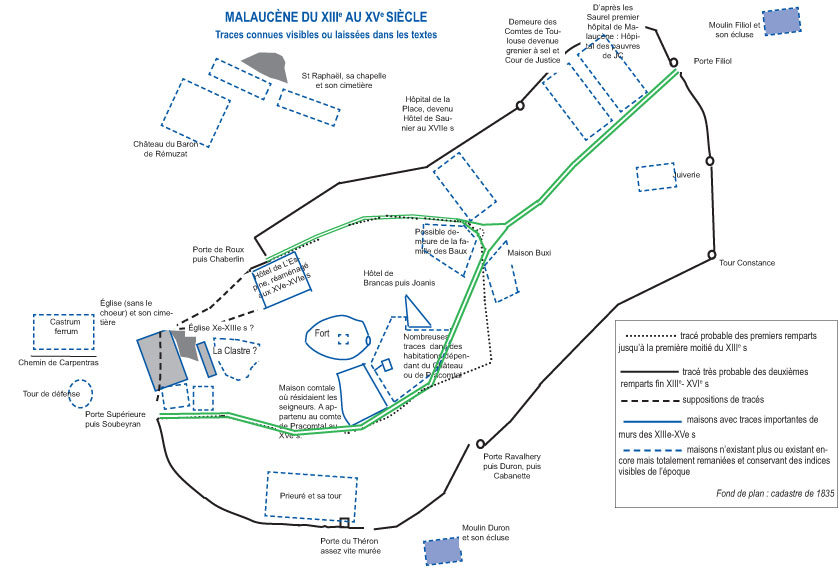 Les remparts Il y a eu au moins deux ceintures successives.Voir dans le présent site le fromat pdf des Actes des premières Rencontres sur le Moyen Âge à Malaucène ... + d'infos |